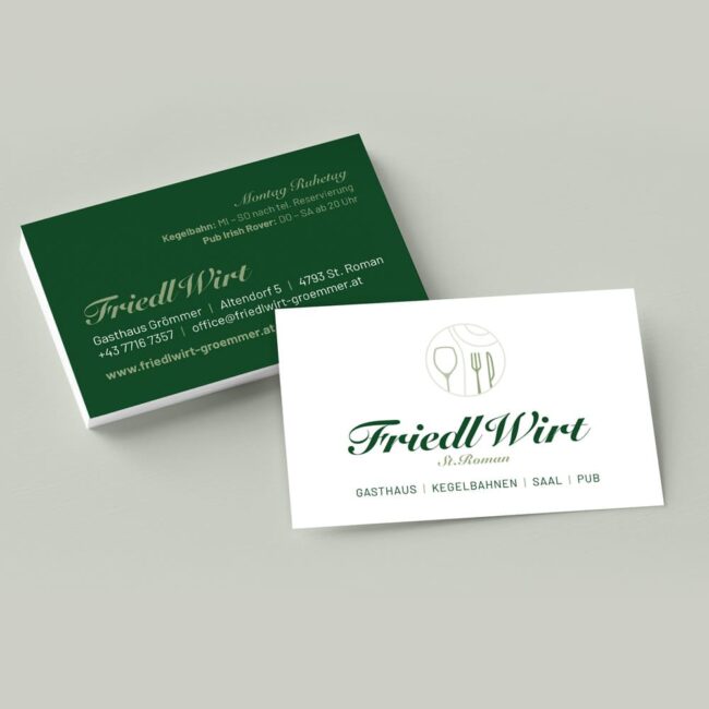 Friedl Wirt Friedl Wirt – ein Traditionsgasthaus, welches schon seit Generationen geführt wird. Hier war es uns ein besonderes Anliegen, einen sanften Logo-Relaunch durchzuführen. Die Stammgäste sollten das Logo durchaus wiedererkennen, aber trotzdem sollte es auch durch unser Design einen neuen modernen Touch bekommen. So wird zum einen die Philosophie der neuen Geschäftsführung widergespiegelt und…